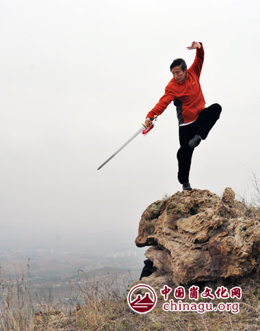 ◇赵圣才两仪神拳真正牛,半边崮上展雄风。老少皆宜随时练,潇潇洒洒任纵横。崮上绝顶我为峰,金鸡独立大刀雄。顶天立地浩然气,十年一剑终成功。崮文化网独家稿件 转载必究