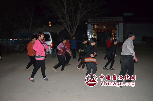 晚餐中,大家推杯换盏,山里人的纯朴、实在、热情,让我们感到像在自己家里一样,大家都敞开心扉、有说不完的真心话。当晚餐结束我们要离开时,主人家门前的场景令我们感到惊讶,有很乡亲在稍微宽阔的巷道里跳热舞,真没想到,这偏僻的乡村还如此赶时髦。更让人惊喜、不可思议的是,有几只山羊随着激越的旋律,在人群里撒欢,蹦蹦哒哒、跑来跑去。乡亲们认为它们是在捣乱,怕我们觉着不好看,索性赶走它们。它们跑回不远的家中,在大门口还朝舞场这边张望。这种场景,实属罕见!乡亲们随着音乐,跳了一支又一支。他们热爱生活、热爱家乡,他们扎根在这片生养他们的土地上,耕耘着,贡献着,他们也是高贵的人;他们也是一个个普通的人,也叫他们“贵人草”吧!赵书记介绍说我们都是支援和宣传他们家乡建设的,让他们再献上一支舞,他们非常高兴,随即跳了一支他们最喜欢跳得最精彩的《中国出了个习大大》。路灯明亮,皓月朗照。能跳者跳,不能跳者当观众,大家都一样的幸福、安恬。山村的夜晚,令人陶醉、令人迷恋。