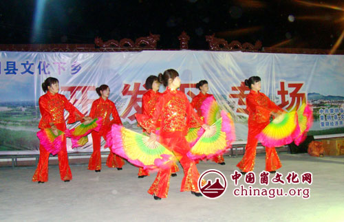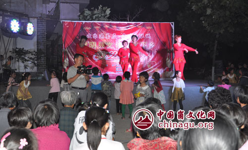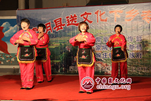 崮文化网讯 彩灯闪烁、歌声飞扬,台上舞姿翩翩,台下笑声连连,每天夜幕降临时,文化下乡演出活动也正式开始了。蒙阴县2015年文化下乡活动自5月12日正式启动以来,全县12个乡镇街区的庄户剧团每天都在下乡演出,戏曲、小品、舞蹈等丰富多彩的文艺节目,为崮乡群众献上了一道道丰盛的文化大餐。