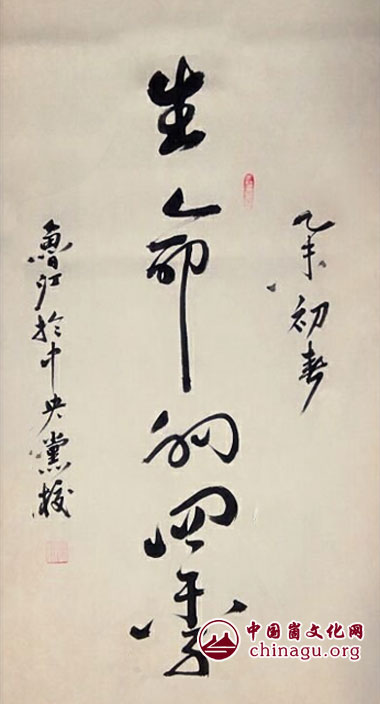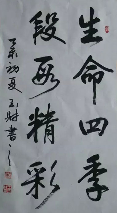蒙阴县书法家协会副主席,县老年书画研究会常务副会长兼秘书王玉财题字“生命四季 段段精彩”