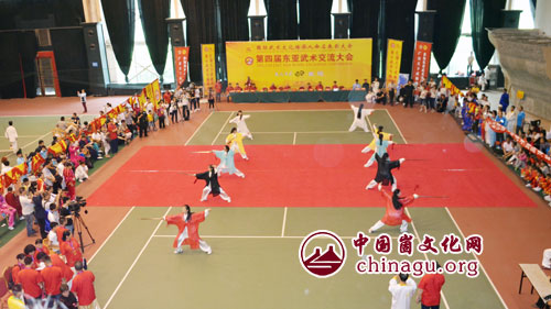 崮文化网讯 旨在通过充分挖掘武术资源,展示武术发展成果和良好投资环境,以及探讨武术发展方向,促成国内外武术机构交流与合作的第四届东亚武术交流大会,于5月29日至31日在北京天下第一城体育馆举行。来自中国、蒙古、日本、香港、澳门、台湾等20多个国家及地区的92支代表队、700多名武林高手,在传统和现代武术拳术、对练、武功绝技等方面,同场竞技,一展身手。