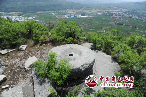 稍事休息,我们又向西部进军。走了大约百十米,在远处看是一片槐树林里,又现一个村落。不同的是,这个村落石墙垒的比东边的精致,而且房间要大。石碾,搥臼也比东边的讲究,大大的碾台,深深的石臼坑,可见当年这里也人烟丰厚,人们在崮顶过着世外桃源般的生活。