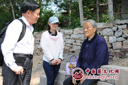 我们一行十几人,身背行装,手持登山杖,肩挎照相机,正像无头的羊群不知向何处行走,盼望着出现一个人打听一下上山的路在哪呢,可左顾右盼等了好长时间也没发现一个人影。正在这时前面出现一位手拄拐杖的老奶奶,迈着“三寸金莲”颠颠独行而来,活脱脱《西游记》里三打白骨精中妖精变化了的老婆婆再现。“老奶奶,村里怎么没有一个人?您这是干啥去?向您打听一下爬毛崮寨的路怎么走?”“我不是人吗?”我们愕然。“村里大人都浇果树去了,小孩都过六、一去了,就剩下我这个没用的人了。”“老奶奶您高寿?”“我都上九十爬了,都成老祸害了,几次到阎王那报道,阎王说啥不留呀。”“老奶奶您真逗。”“问我干啥去,我想去学校看看重孙咋过六一呢?”大伙七嘴八舌地笑问老奶奶:“今天是六、一儿童节,您也想和儿童一样过过六、一吧?”“您颠着小脚,跳个独脚舞那才好看呢。”“再唱个排排坐、吃果果更好玩呢。”大家七嘴八舌地逗老奶奶。“我都这把年纪了,还跳舞?那不成老妖精了。”老奶奶嗔怪道。“老奶奶,看您乐呵呵的,面善心慈,一定健康长寿,怪不得都快九十岁了还真么硬朗。”“嗨,我是气不生、事不惹、笑口常开,争取再多活几年呢。”“您一定长命百岁,祝您六、一快乐。”