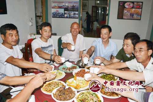 崮文化网 “醉美乡村”是山东蒙山酿酒有限公司用纯粮酿造的一款新品酒。崮文化研究会的十余名成员于父亲节这天晚间,在崮云间酒家祝贺在蒙山酿酒文学笔会中获奖的丁军国、王家安、赵圣才等崮网总编、作者,畅饮了这款酒。这款酒绵厚爽口,余香悠远,增进了众友情谊,更使白日的欢乐在祥和的夏夜续延。