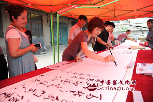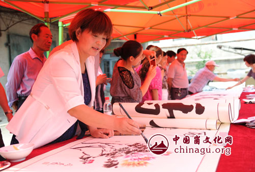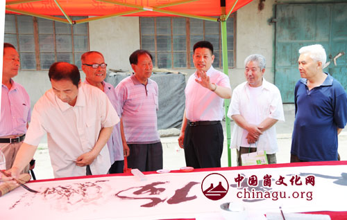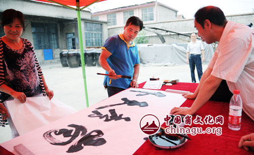 书画家挥毫泼墨庆祝蒙山酿酒有限公司建厂七十周年。