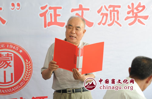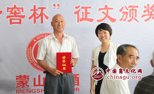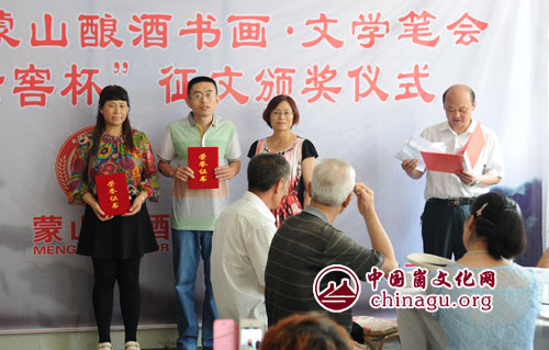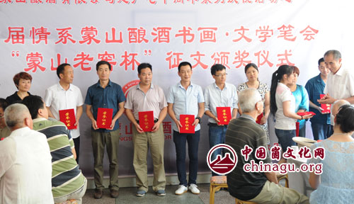 蒙山酿酒有限公司董事长王兆恩致欢迎词;蒙阴县委宣传部常务副部长尚红霞致贺词;平邑县老干局副局长孙燕、县老领导薛庆德、傅家传、华建集团副总王义来等参加了该庆祝活动,并为“蒙山老窖杯”征文获奖者颁奖。