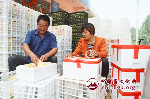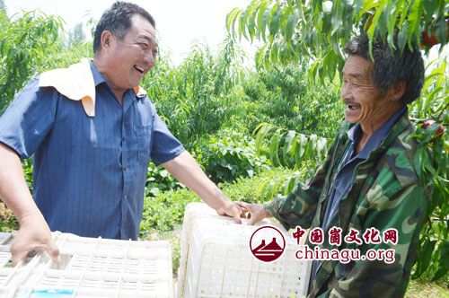 由于靠着山里人的热情与诚恳,越来越多的客户变成了张纪山的“回头客”,现在他已与北京、上海等10多个省市的客户建立了长期的销售联系,年外销蜜桃800多万公斤,连续10年不但本村果品卖得及时,而且周围的几个村的果品无一积压,果农们数着一沓沓的钱,打心眼里感谢他,称他为“蜜桃村官”。(张继增)