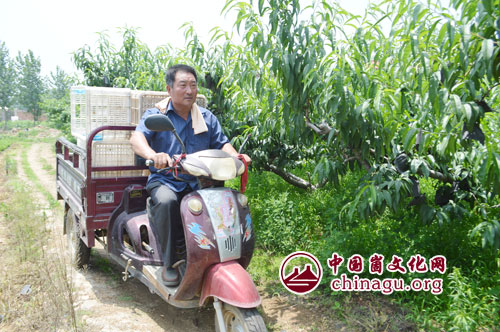 张纪山在做好蜜桃销售的同时,不忘村里的老年人,每当客户来了,张纪山忙里偷闲把蜜桃箱子送到老人的手里,然后按着客商要求的收购时间,再把蜜桃送到收购点上,深受老人们的好评。