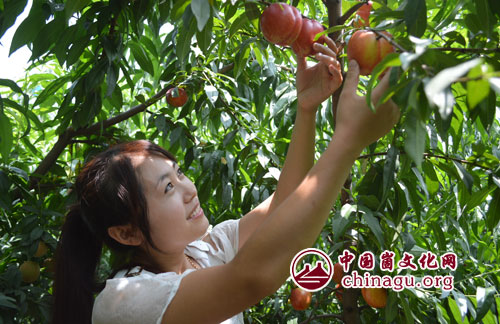崮文化网讯 时下,正值蜜桃收获季节。在山东省蒙阴县常路镇蒋家坪村有机蜜桃生态园里,来自城里人在采摘蜜桃。果农们高兴地说:“俺村里的蜜桃是挂在树上卖的,光等着城里人来采摘,不光销路好,价格也卖的高”。近年来,该镇大力实施生态果乡游,采摘果品游,在蒋家坪村、石峰峪村建起了2000多亩的蜜桃生态园,让游客春天赏花,秋天摘果,使游客穿行在桃林中,体验着采摘的别样乐趣,也给当地果农增加了效益。(张纪增)