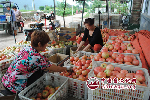 崮文化网讯 时下正是西红柿采收上市的旺季,在崮乡坦埠镇诸夏、西崖等村,红彤彤的西红柿挂满了枝头,田间地头一片收获的繁忙景象。一个个西红柿收购点热闹非凡,菜农们将装满西红柿的纸箱运往收购点后分拣包装,收购商装满卡车后源源不断地运往外地。