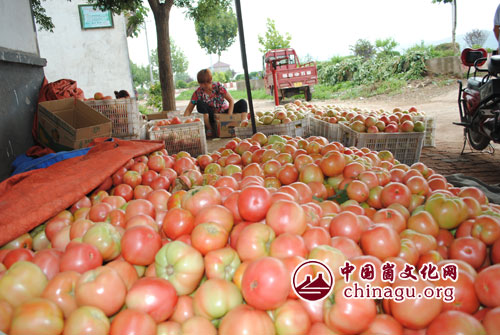 该镇诸夏村是有名的蔬菜专业村,全村95%的村民以蔬菜种植为主。蹇兆生是诸夏村一位蔬菜种植大户,夫妻二人每年靠着种植西红柿供养儿子上大学。今年蹇兆生家又种了2个大棚西红柿,由于种植经验多,他家的西红柿不仅产量多,个头也大,不打农药和催熟剂,味道好,收购商们都抢着要他家的西红柿。蹇兆生美滋滋地说,昨天他家一上午就摘了700斤,当场卖了1000多元。