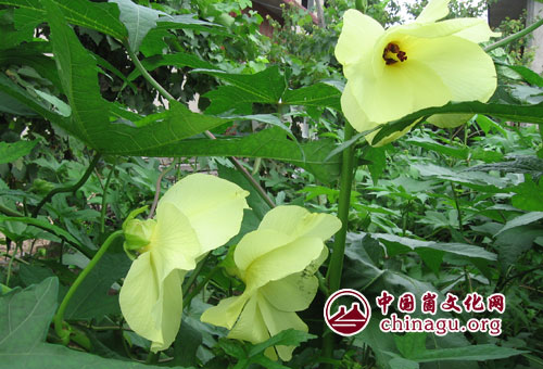 金花葵,俗称黄蜀葵、野芙蓉、菜芙蓉、救心草等。属一年生草本锦葵科秋葵属植物。其有极高的食(药)用价值和观赏价值,经济效益较高,是集观赏、食(药)用、保健、化工为一体的奇特植物,富含生物黄酮、胶原蛋白、天然植物雌(雄)激素和多种微量元素,被生物界人士称为“植物大熊猫”、“植物软黄金”等。