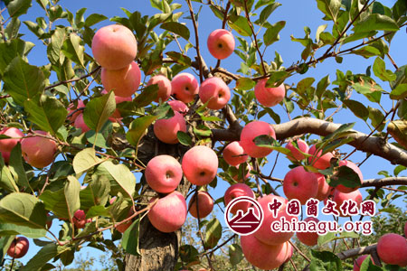 沂源人自己说,他们称自己的苹果叫沂源红,卖出的价钱超过了烟台的苹果,而大部销到了南方,甚至卖到了国外,成了苹果名牌中的名牌。但在我们心目中,山东的苹果都是名牌。我们极感兴趣的是,嫩果长的还不到山鸡蛋那么大,为防虫蛀药沾,及早就套上了内外两层的里黑外黄的的袋子,如满树挂上了金色的小房子,阳光一照,金黄一片。把这些幼果想象成了金銮殿里的小皇帝,严严实实被保护起来,失去了与外界接触的一切自由,不知这些“小皇帝”们是愿意还是不愿意,高兴还是不高兴。