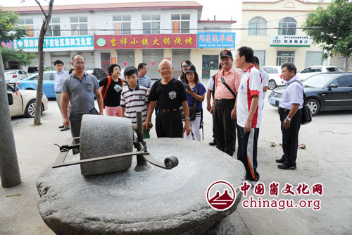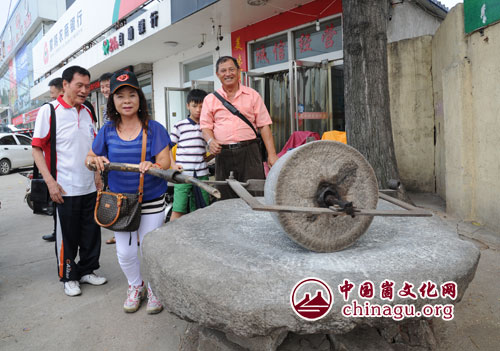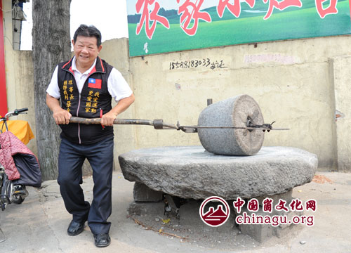崮文化网讯 8月15日,前来参加“情系蒙山酿酒”海峡两岸武术精英交流会的台湾武术协会理事长陈清钦、秘书长张金豪一行在蒙阴县城小灶台品尝风味小吃后,兴致勃勃的参观这里的民俗文化,享受了一次与众不同地方风情。(丁军国 摄)