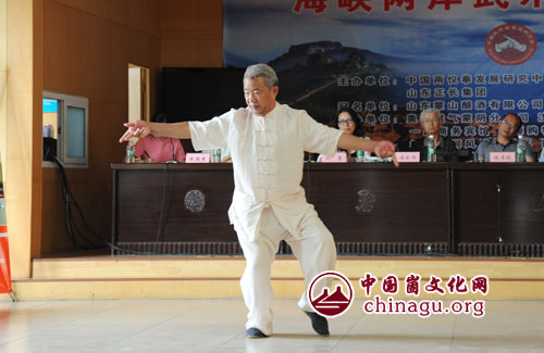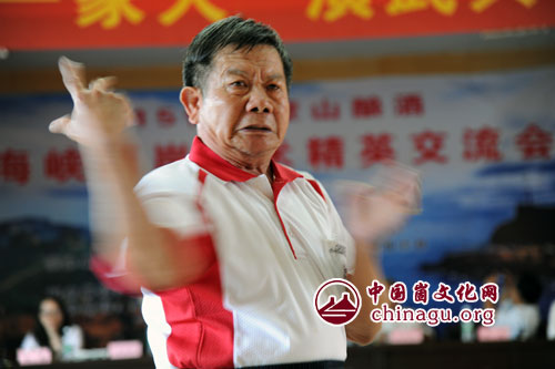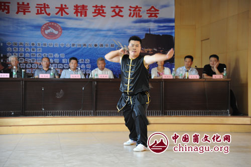 本次盛会以“海峡两岸一家人 演武共铸中华魂”为主题。来自台湾武术协会的14名成员与大陆武林高手相聚蒙阴桃园购物有限公司礼堂,现场切磋交流,享受武术健身的快乐。会上集中展示了以传统武术拳太极拳、螳螂拳、少林拳等流传广泛的名拳和稀有的两仪点穴拳等拳种,精彩的表演赢得了现场观众的阵阵喝彩。通过演武活动,弘扬了中华传统武术文化,进一步促进两岸的民间体育文化交流。(丁军国 摄影报道)