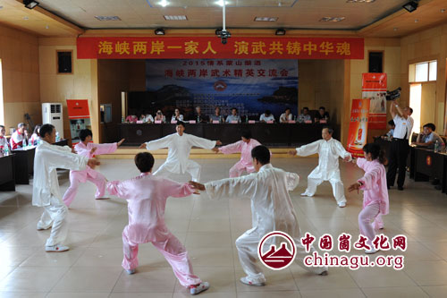 “情系蒙山酿酒”海峡两岸武术精英交流会现场。