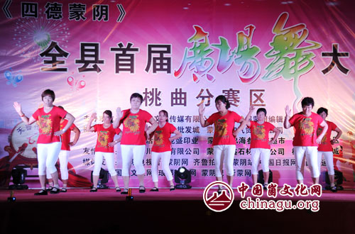 崮文化网讯 8月23日晚,由山东天睿文化传媒有限公司、沂蒙晚报今日蒙阴编辑部主办,宝莱佳家俱精品批发城、蒙阴鑫合汽贸有限公司、龙盛印业、依依生活馆承办的2015年《四德蒙阴》首届广场舞大赛8月22号桃曲分赛区在金鑫社区广场即将拉开帷幕。