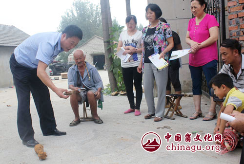 民警提醒群众注意安全,及时收缴战时遗留炮弹。
