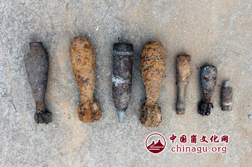 村民在云蒙湖环湖大堤施工地捡拾的旧炮弹。