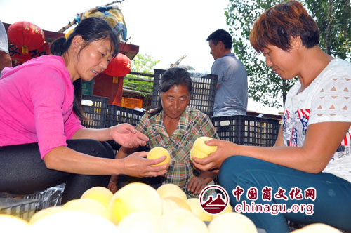 崮文化网讯 泉庄镇三庄村黄桃收购现场看到,崮乡桃农们正忙碌着采摘、挑选、装箱……。走在自家满园飘香,硕果累累的桃园里,桃农们难掩脸上的喜悦。