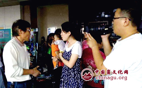 临沂电视台记者采访蒙阴获奖作者张德重。