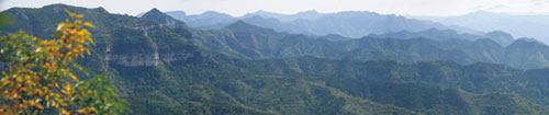 2、在点将台上,向东望去,蔚蓝色的天空下,山脉层层叠叠,由近及远,似一条条长龙,龙骨清晰,头北尾南,数来共有八层,蔚为壮观。
