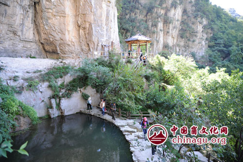 在齐山山门前,总经理党宝修向采风团成员介绍了齐山旅游产业发展情况。然后大家徒步依次参观了高山悬瀑——观音瀑;绝壁云顶——唐三寨;九峰抱谷——古栈道;“日月同辉”——齐门洞等特色景点。并就齐山旅游区的地质地貌特征、人文遗存、植被状况、旅游资源等与岱崮地貌进行了比对和分析。(丁军国 魏东摄影报道)