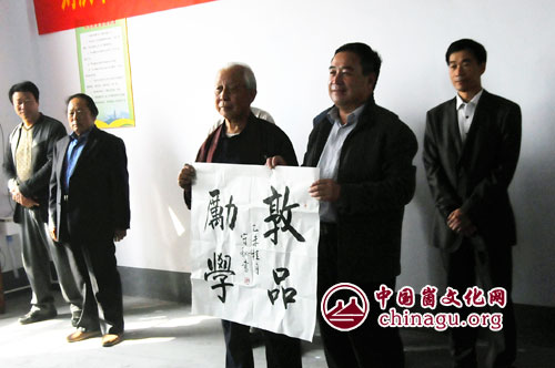仪式上文学社负责人赵圣才同志向学校捐赠了他出版的新书《生命的四季》30册。最后,傅家传、公衍余、丁军国、樊功建等领导为天马望月文学社暨中国崮文化网揭牌。与会领导和嘉宾还视察了学校。