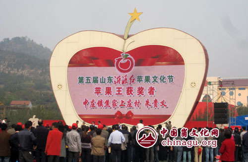 2012年10月15日,第二届山东沂源红苹果文化节在县文化广场召开。省农业厅副厅长庄文忠主持开幕式。国家农业部优质农产品开发服务中心副主任陈金发、省商务厅巡视员王德福、省旅游局党组成员张明池等出席了开幕式。省农业厅苏桂林发布了苹果新品种“沂源红”鉴定报告。 在为期6天的第二届沂源苹果文化节期间,一颗重达520.8g、色泽红艳、表面光滑、果型周正的苹果获评为“苹果王”。摘得果王桂冠的是中庄镇马兰峪村果农薛金唐,他摘得桂冠的同时还获得价值一万元的100袋多肽有机复合肥。“苹果王”最终被山东远东国际生物化工股份有限公司以8888元的高价拍得。 >>>第1页 >>>第2页 |