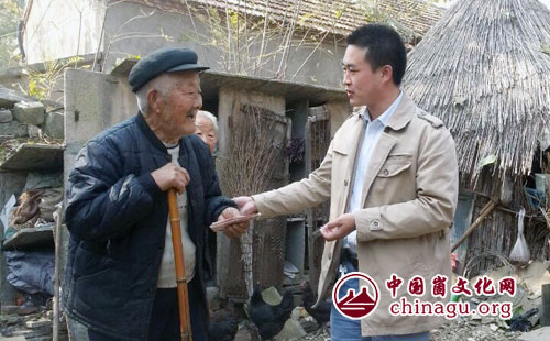 岱崮镇工作人员走访慰问百岁老人为他们发放长寿金。