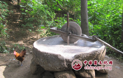 作为中国第五种岩石地貌的沂蒙崮乡,其地貌造型独特,风光奇绝,人文历史悠久,文化底蕴深厚。先民们求生存谋发展,在华夏大地上繁衍生息了几十万年。通过多年来的实地考察发现,石臼、石碾和石磨这三种石制工具是先人们生存的生活依赖,也是后人们生产发展的主要物证。这三种用石头制作成的工具,目前在沂蒙山区都有完好遗存,其分布范围和使用范围较广,也很典型。 石臼也叫兑臼,是一种非常古老的舂米工具,应是几千年之前的文物遗存。在一些反映古代民间生活的绘画里,常见舂米图,画中多是女人举着舂杵,面前是石臼,臼的样子像小水缸。“田家秋作苦,邻女夜舂寒”。 李白的这句诗,说的就是舂米的辛苦。历史上,用石臼加工粮食的时间很长。原始谷物加工的办法是以棍棰打谷穗使之脱粒、去壳,以后才发展为舂打。《易•系辞》中记载:“黄帝、尧、舜氏作……断木为杵,掘地为臼。杵臼之利,万民以济。”《说文解字》曰:“古者雍父初作舂。” 《世本•作篇》中说,“雍父作臼杵,舂也。”宋衷注曰:“雍父,黄帝臣也。”由此说明杵臼发明于原始社会末期的黄帝时代,实际上杵臼的历史可能更古老些。原始之杵臼是地臼,即在地上挖个坑,铺上兽皮或麻布,尔后倒进谷物用木棍舂打。断木作杵地掘臼,捣舂之法由此始。宋应星《天工开物•粹精第四》中记载:“晨炊无多者,断木为手杵,其臼或木或石,以受舂也”。到了后期,虽然有了石碾和石磨,但许多地区仍在使用杵臼。所有研钵、擂钵、舂米桶、捣药罐、蒜臼子等等,都是杵臼的家庭成员。