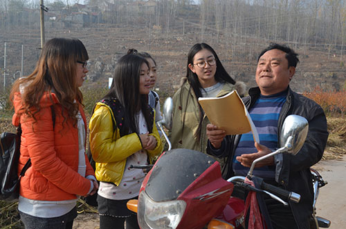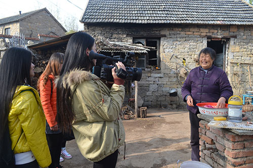 新华网山东频道11月14日电 (王爽) 11月12日,山东女子学院文化传播学院新闻调查团深入岱崮地貌景区的附近村庄,对当地的方言进行搜集研究,用声像方式保存方言资料。