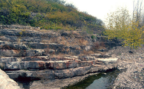 岱崮地貌:山水相交像是流水对山石的冲击形成了层层交错的水石岸。