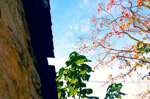 霜降已过,寒冬将至,唯有老柿子树不畏严寒,也惟有沂蒙精神不畏岁月流转。(姜竹青)