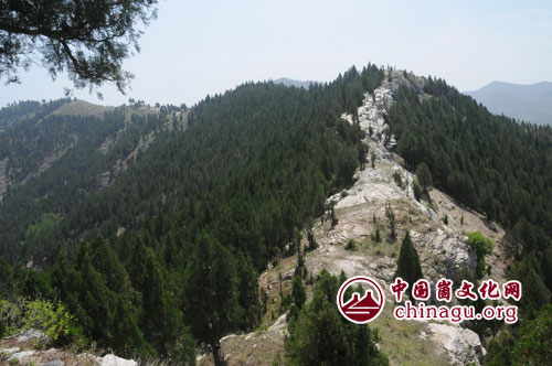 登临此山,你会看到一条在动的真龙。起伏又盘旋的山脊即龙脊,由裸露的大块大块的石灰岩构成,在太阳照射下,闪着亮光,像是龙的麟角,也就是地质学上的脊石裸露线。其走向是先南北,后东西,再南北,后东西。山的模样确实像一条蟠龙,龙头、龙尾皆朝着石楼村。龙脊两侧是茂绿的柏树,探出的山梁就是龙的趾脚。有凤来仪,这条龙仿佛盘旋起舞伴你一起飞翔,能感触到此龙的大小和升隐。大则兴云吐雾,小则隐介藏形。升则飞腾于宇宙之间,隐则潜伏于波涛之内。此龙乘时变化,犹人得志而纵横四海。龙之为物,可比世之英雄也。