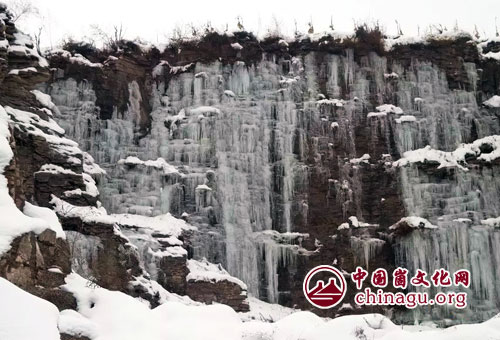虎头崖壁挂冰川,足谓平生之罕见。巧夺天工自然造,疑是玉帘落九天。