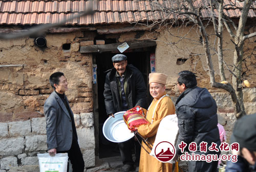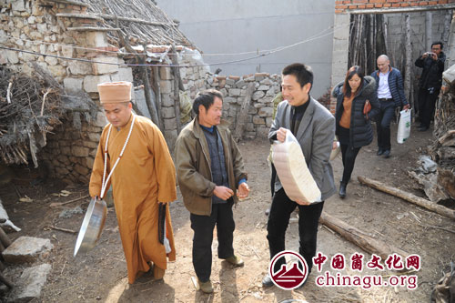 崮文化网讯 昨日,适逢元旦,在山东省蒙阴县蒙阴街道办事处西儒来村,海浪谷祇园精舍住持道智和爱心居士及中国日报网交通频道、中国崮文化网的工作人员走街串巷,为这里的20名孤寡、特困老人送温暖献爱心。