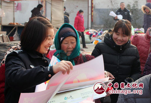 崮文化网讯 春节临近,山东省蒙阴县公安局蒙城派出所组织民警到辖区内开展“送福进万家”结亲连心活动。民警主动到联系户、集市等地为群众送上新年“福”字、对联,积极向群众宣传春节期间的一些安全常识,宣讲防盗抢等相关知识,并现场解答群众的相关咨询,热心帮助群众,详细询问群众所需所求。
