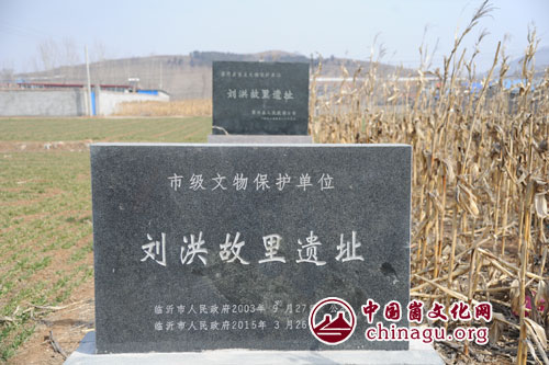 崮文化网 新年刚过,崮文化网就组织了一次玉皇山采风游。玉皇山距蒙阴县城大约5公里的距离。车子沿205国道一直向西,走不多远,然后北拐,沿一条乡间公路,直走下北,远远地,看见散落在山坡前的村庄,听人说那庄叫召子官庄,刘洪故里据说就在这里。在路边的麦田里,立有“刘洪故里”石碑。