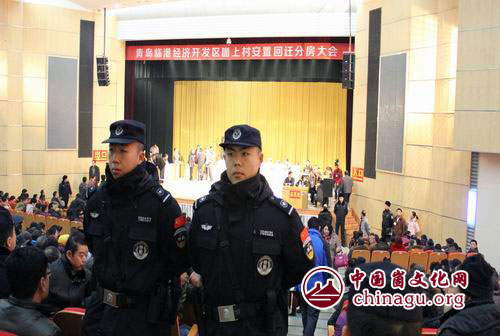 崮文化网讯 1月21日,黄岛市临港经济区崮上社区组织召开分房大会,为了确保此次回迁安置工作顺利开展,维护分房现场会群众分房秩序,黄岛公安分局治安特勤大队根据方案部署要求,组织170余名警力,会同交警、隐珠派出所参加分房现场安保执勤工作。通过采取机动与徒步相结合的方式,对会场四周开展巡逻盘查,并在会场外设立警戒观察哨,切实维护现场周边环境的安全,确保了此次回迁分房有条不紊地进行。