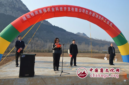 崮文化网讯 3月1日上午,潍坊格润莱福农业科技开发公司王坟牡丹园项目在青州市王坟镇正式开工,青州市市委常委、宣传部部长高凌云出席开工仪式并致辞。