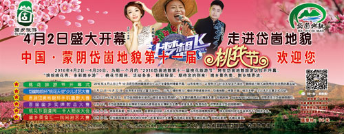 崮文化网讯 春风和煦、人面桃花。蒙阴第十一届桃花节将于4月2日在岱崮地貌景区隆重举行。本届桃花旅游节以“缤纷桃花秀,多彩崮乡游”为主题,旨在以花为媒,持续强化地域旅游特色品牌的知名度和影响力,让人们更直观的品味“天下第一崮乡”独具魅力的人文内涵及原生态秀美风光。
