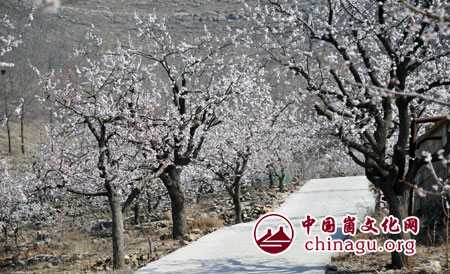 百年山杏花盈盈, 韵致何娉婷。人面映红未曾羡,此般素颜可堪笑春风?突石硬土瘦枝生, 野谷本长空。游众纷爱行林下,哪知心性从来幽且清!