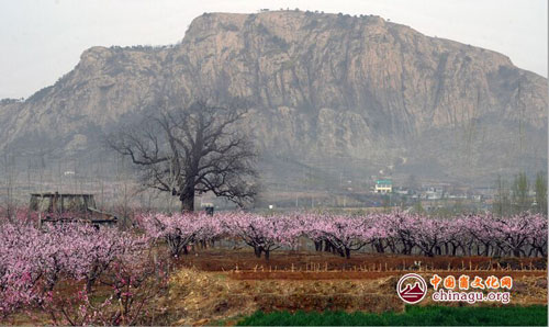 崮乡桃花遍山坡,不见农人赏花客。春夏秋节耕作忙,冬来求得暖被窝。