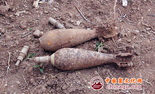崮文化网讯 4月7日15时许,蒙阴县公安局野店派出所接到翻金峪村村民伊某报警称:在自家桃园内发现两枚炮弹。
