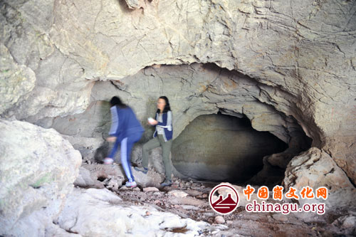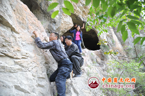 考察崮崖上的龙虎洞。 丁军国摄