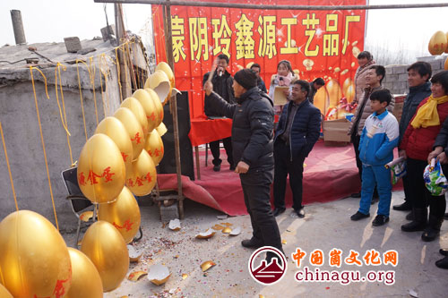 砸金蛋,拿大奖。玲鑫源工艺品厂开业庆典。