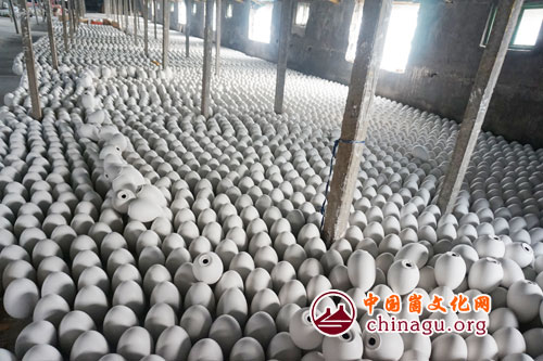玲鑫源工艺品厂生产车间待镀金的“裸蛋”。