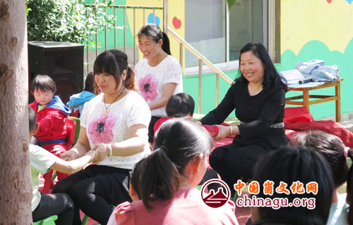 启智特殊幼儿园园长张烨与孩子们互动交流。丁军国 摄