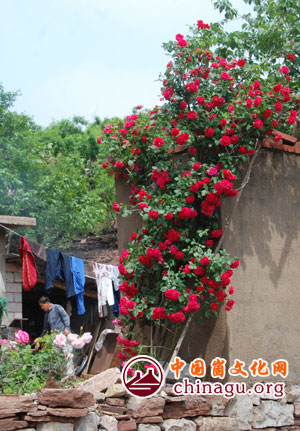 崮文化网讯 正是花开烂漫好时节,在岱崮地貌核心地蒙阴县岱崮镇,家家户户的小院里总少不了几株月季,而爬藤月季和蔷薇更是受到当地群众的青睐,或攀藤而上、或顺墙而伸,装点着这绿意盎然的世界。青山、绿树、村庄还有墙外的花 ,一幅幅别致崮乡小景图让人满怀欣喜。